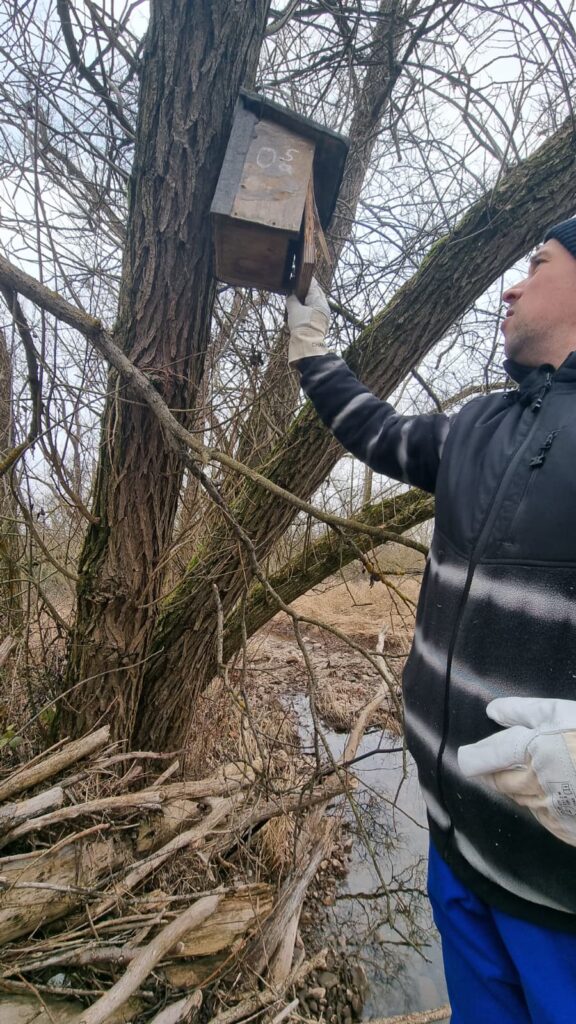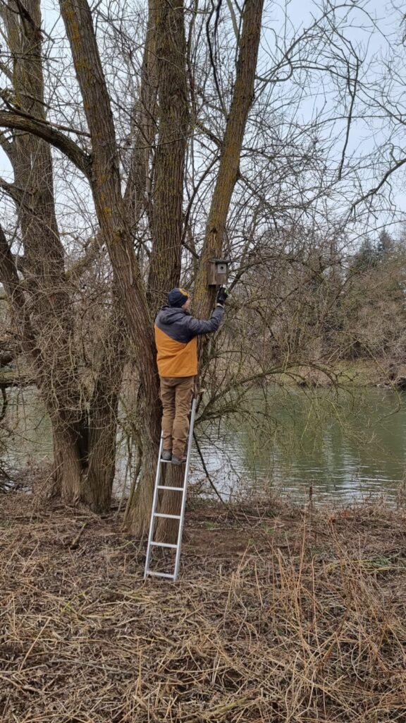Die Arbeit verlief insgesamt problemlos. Nur wenige Nistkästen mussten umgesetzt werden, da der Biber bereits am Baum genagt hatte oder einzelne Bäume inzwischen umgefallen waren. Hier haben wir direkt neue Standorte identifiziert und die Kästen wieder aufgehängt. Selten waren auch kleinere Reparaturen notwendig, die direkt durchgeführt wurden.