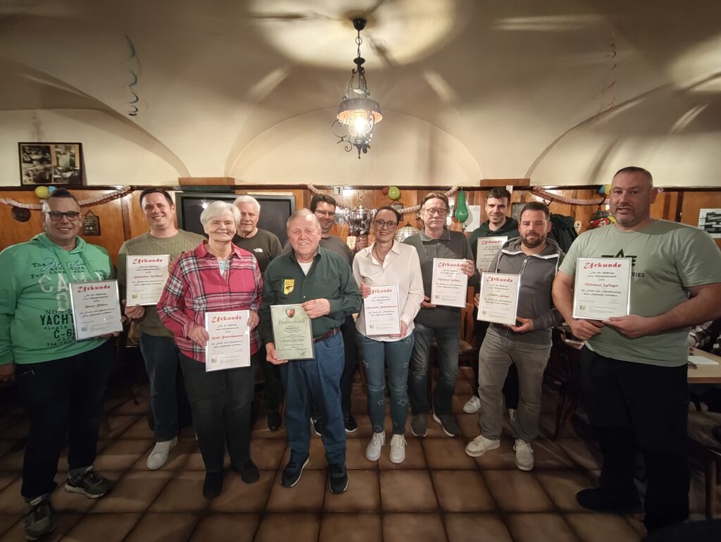 Ein besonderer Programmpunkt war die Ehrung langjähriger Mitglieder. Insgesamt wurden 12 Mitglieder für ihre Treue zum Verein ausgezeichnet. Die Hälfte von ihnen gehört unserem Verein bereits seit 25 Jahren oder länger an – eine beeindruckende Verbundenheit über viele Jahrzehnte hinweg.